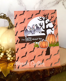 I'm loving my MFT Witch Way Is The Candy stamps and dies and was anxious to play along with the new MFT Wednesday Sketch Challenge! I experimented with using Tim Holtz Distress Oxide inks for the background - blending them with the small circular tools then splattering some water droplets to get a splattered bleach look. I colored the images with Copics and sponged the moon with Fossilized Amber distress oxide ink.