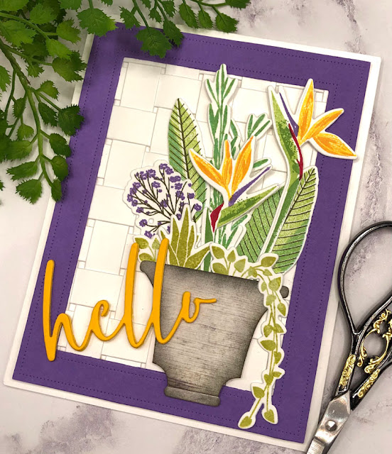 STAMPS: Just Sentiments: Happy Hello, Vase Collection 3, Floral Paradise, Loosely Woven.