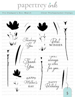 I really love the new line that PTI is introducing called Pro Stamper's Box. This first one is really lovely with fun background elements, frames, beautiful simple flowers and awesome sentiment dies!